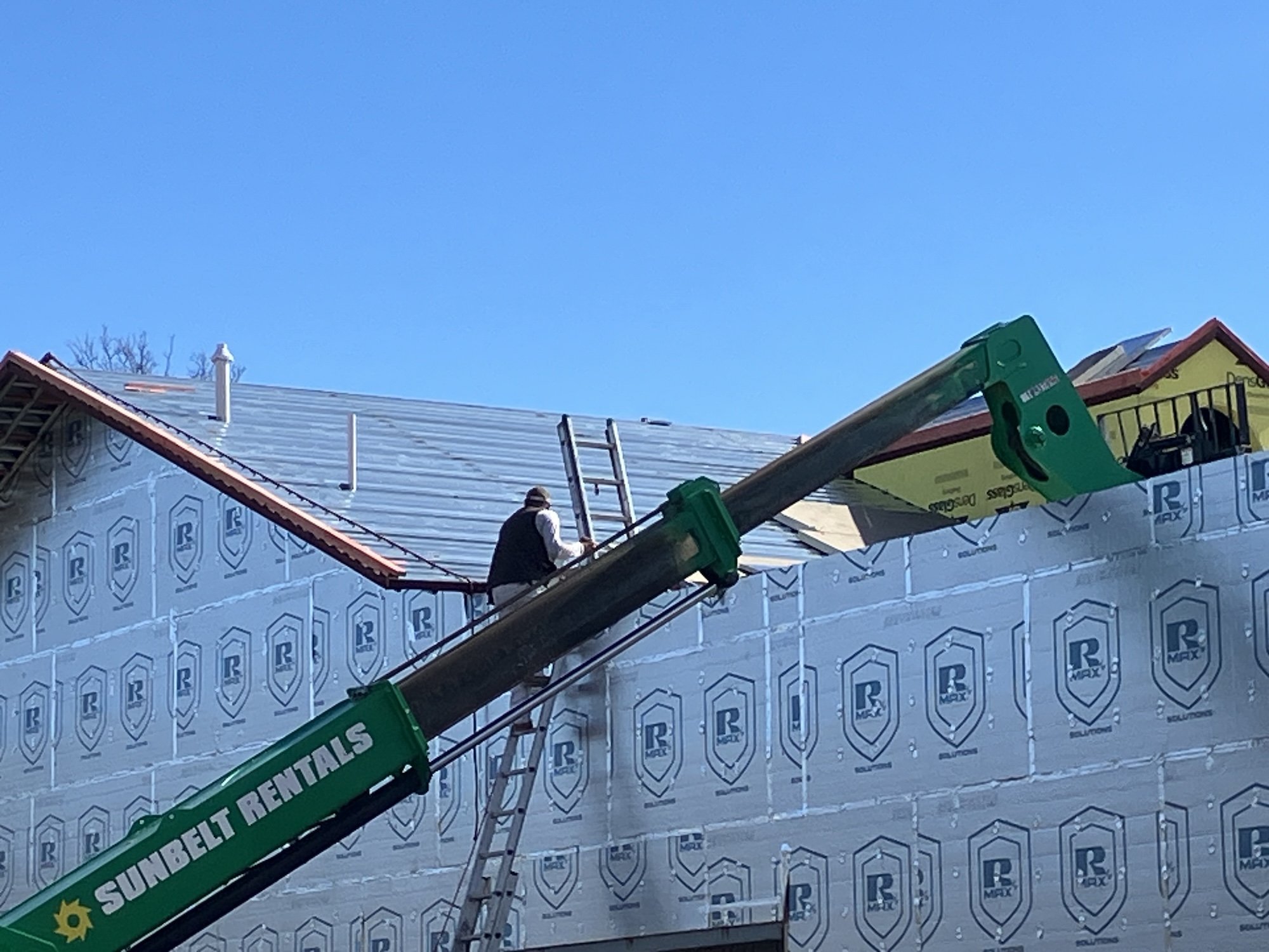 The interior and exterior framing on The Great Hall is continuing and the exterior sheathing has begun.