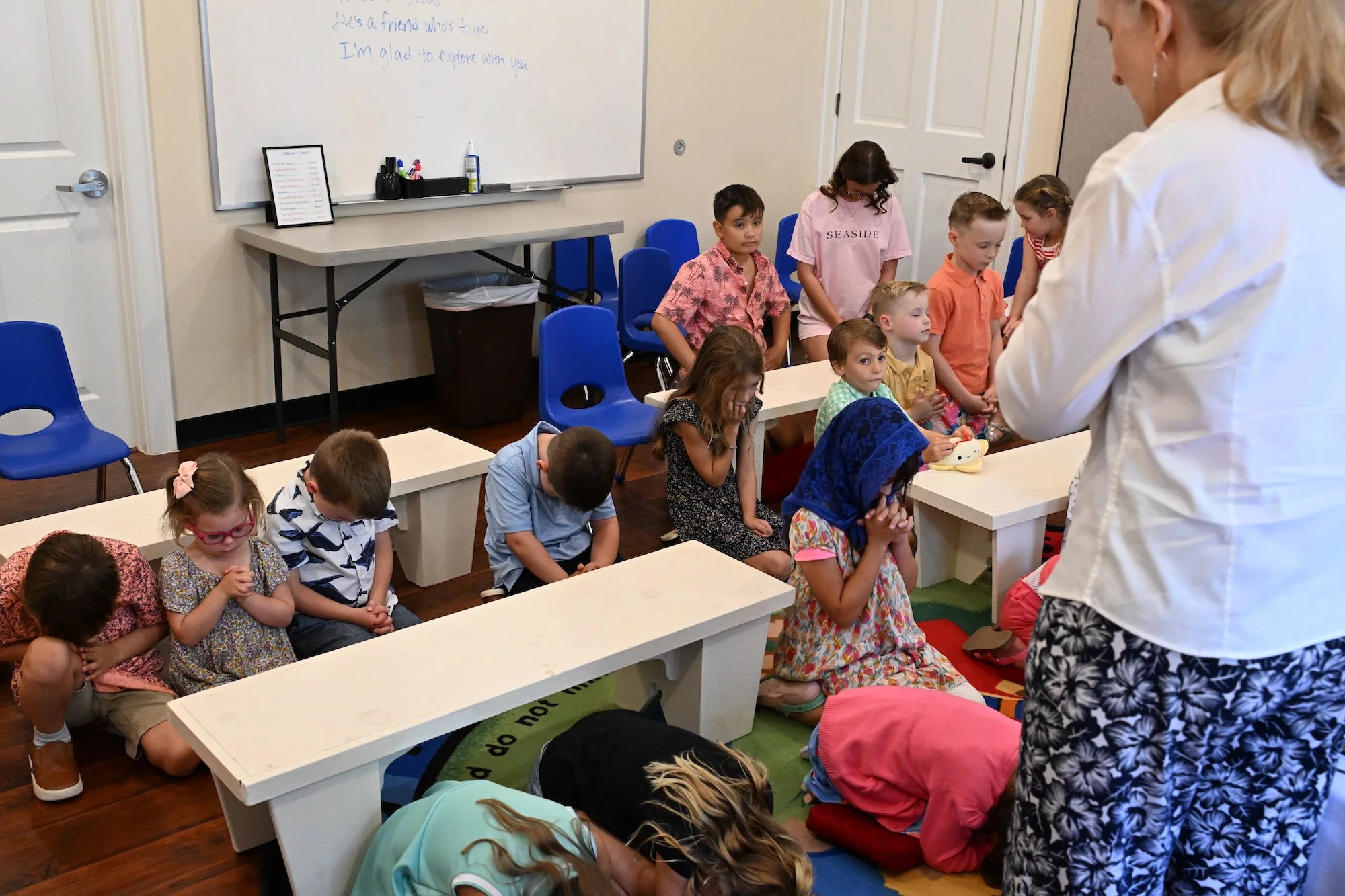 Children’s Chapel is a unique service for children from around age 3-8 that includes age appropriate hymns, prayers and a Gospel lesson. The kids start in the "big Church" with their parents and then when called, they follow the cross to their own Chapel in the Music Building. Their service lasts about 30 minutes and then they are brought back to their parents in the big Church in time for communion.