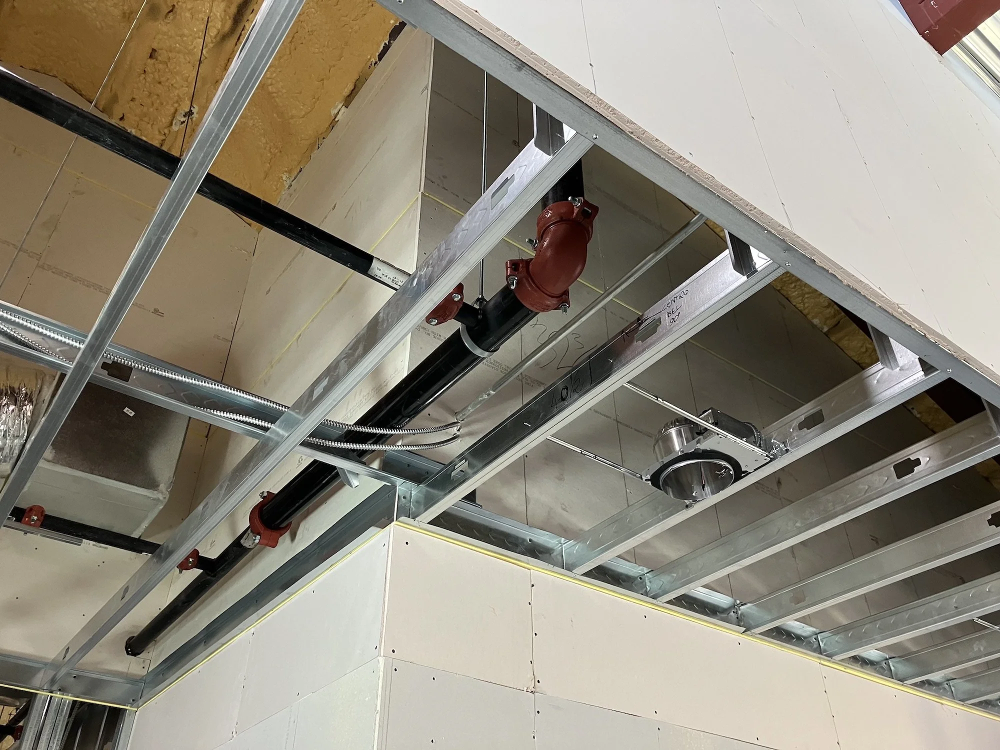 Rough in for the existing Parish Hall fire protection sprinkler system has been completed.