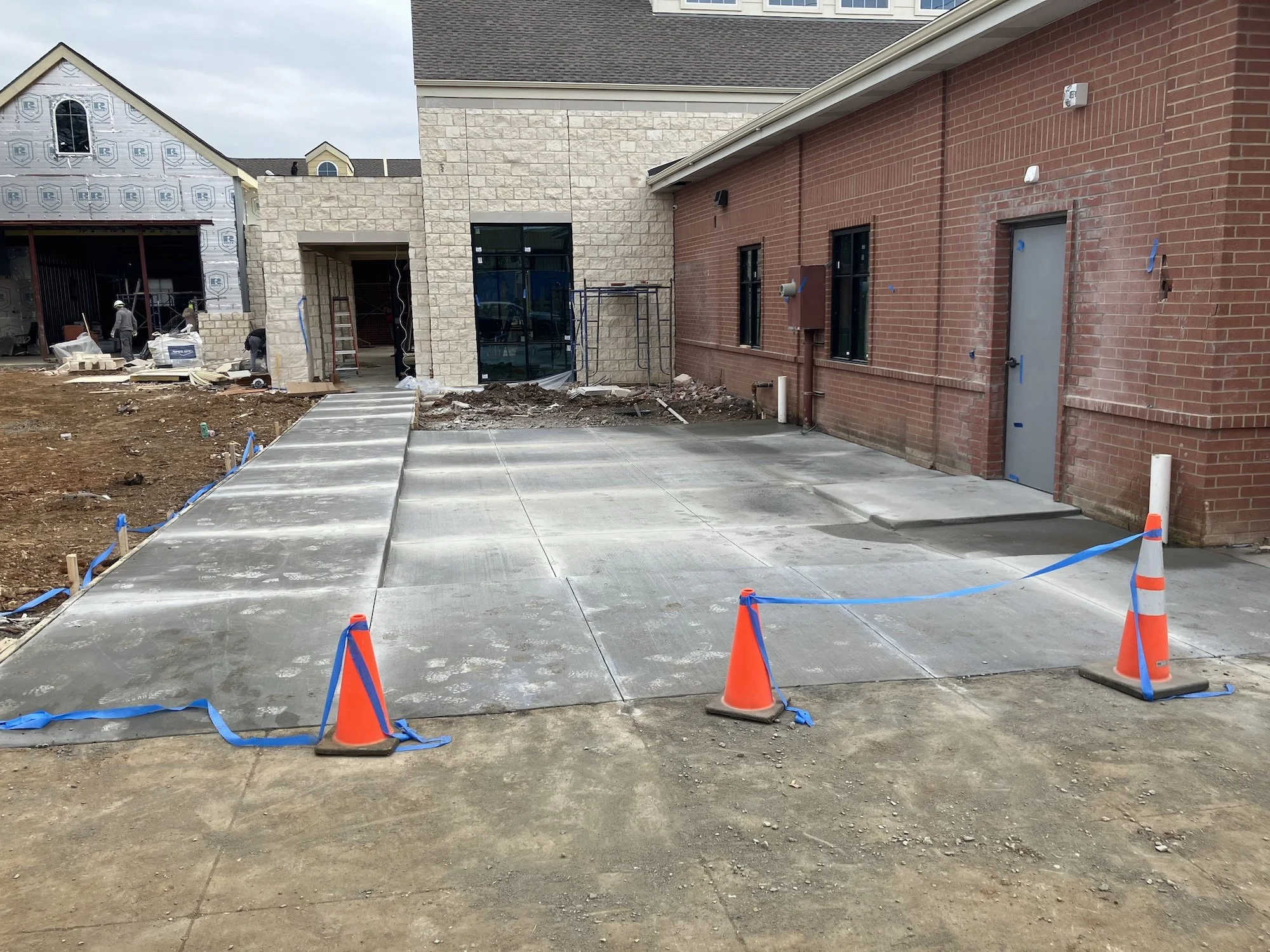 Additional concrete work for the sidewalk around the back patio and the fire lane turnaround has begun.