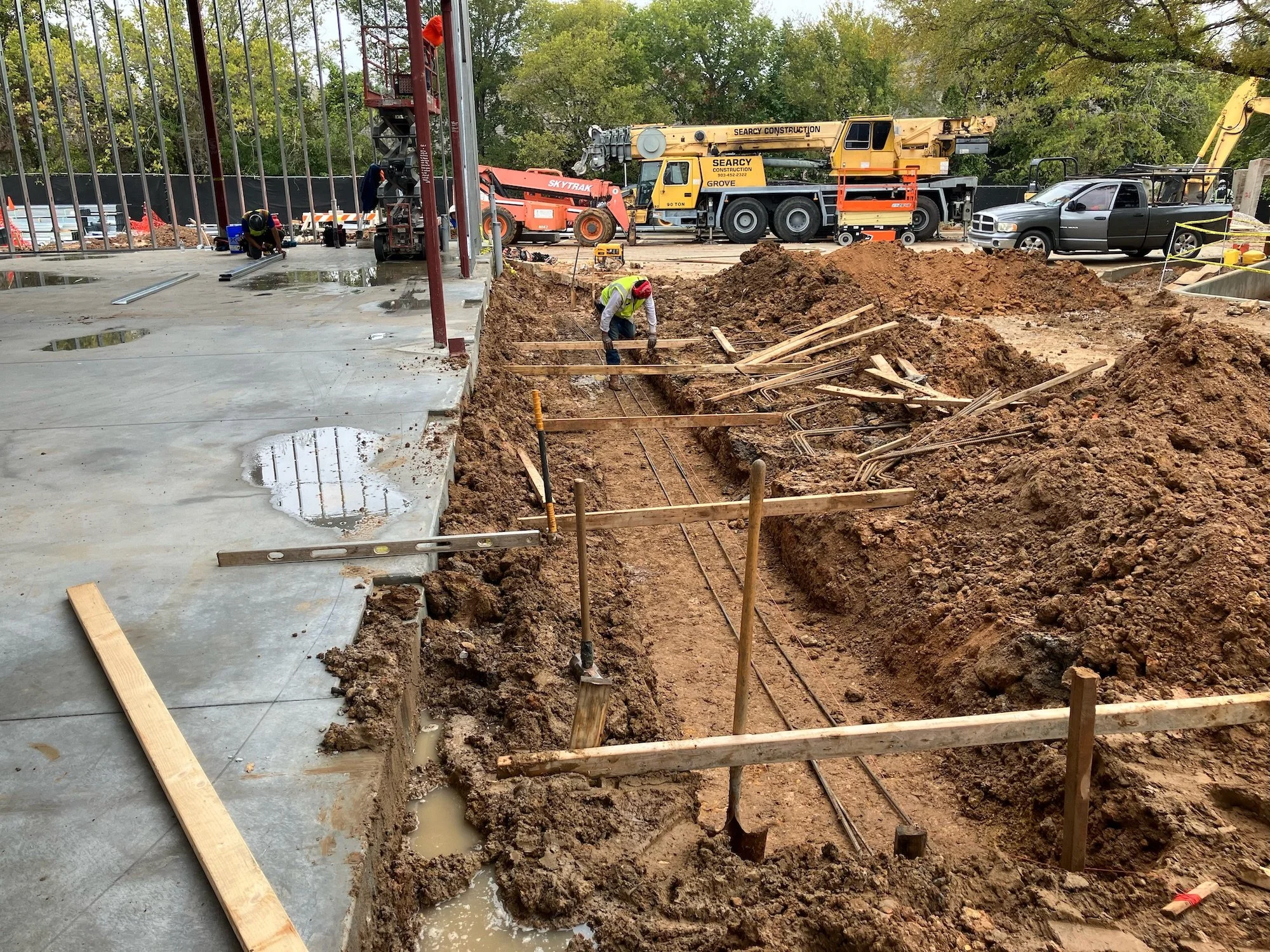 Preparation for the foundation has taken place this past week and will continue next week. The footprint for the foundation has been dug out and then soil is being added back in layers. Water is applied to compact each layer and then testing is performed to ensure soil stabilization before the next layer is added.